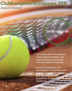 Van 30 augustus tot en met 7 september worden de jaarlijkse clubkampioenschappen georganiseerd. Je kunt je vanaf nu inschrijven via deze link. Ook dit jaar kan er worden ingeschreven voor zowel dubbels als enkels. Wij hopen weer op veel inschrijvingen.