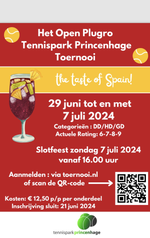 Ook organiseren weer het Open Plugro Tennispark Princenhage Toernooi. Het toernooi vindt plaats vanaf zaterdag 29 juni t/m zondag 7 juli.